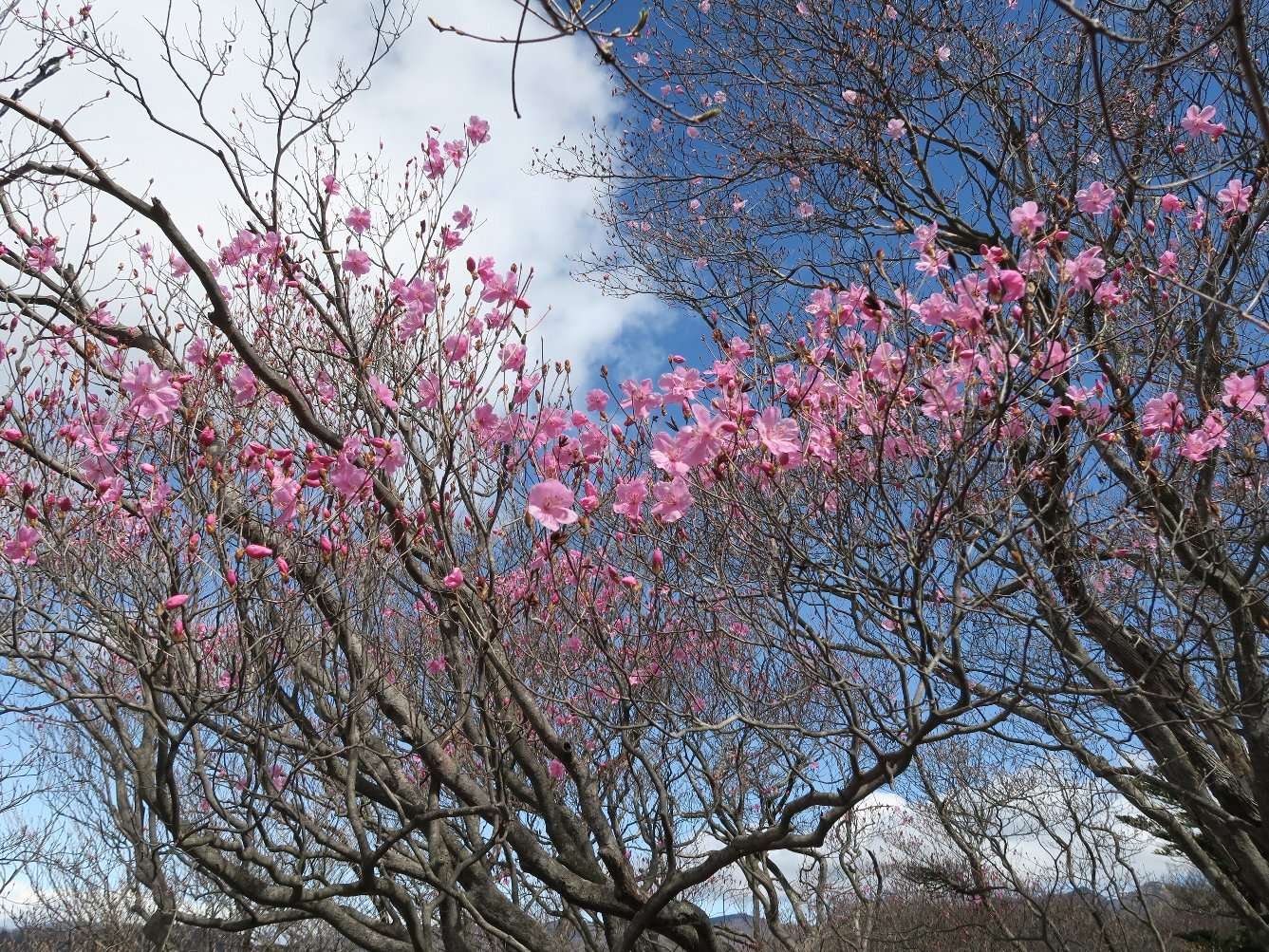 ちょっとピンク色は少な目です。やはり先週の雪風にやられたのでしょう・・・が、濃淡が綺麗です(写真をクリックで拡大可)