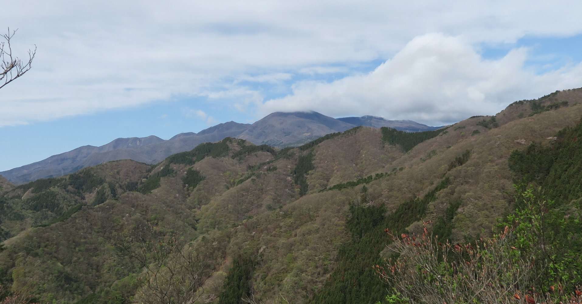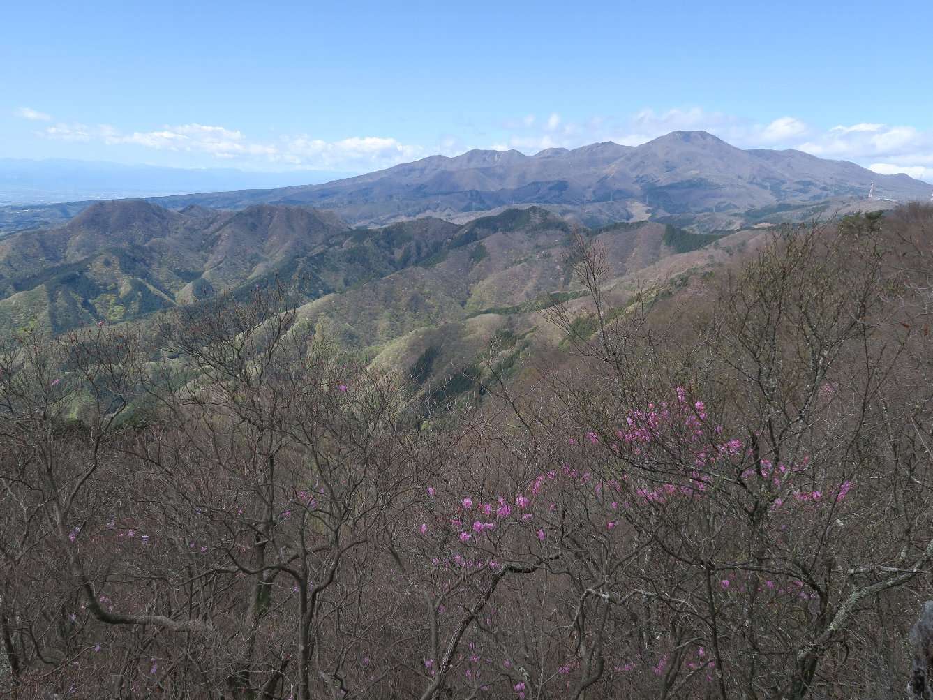 尾根に、うんせうんせと登り上げて休憩後、高度を上げにかかりますと、赤城山も呼応するように山容を見せてくれます(写真をクリックで拡大可)